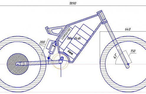 Рама для создания кастомного заряженного электробайка c огромным пространством для размещения аккумуляторов.